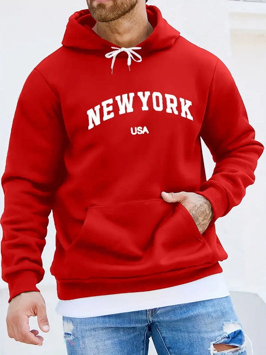 Men's Spring and Autumn Casual Warm Loose Fashion Classic NEW YORK USA Letter Pattern Printed Long Sleeve Round Neck Hoodie
