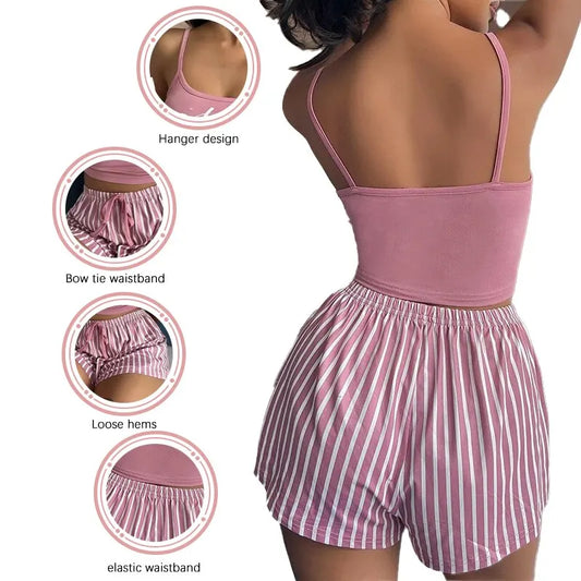 2 Pieces Set Women'S Pajama Shorts Suit Homewear Print Underwear Pijama Sexy Lingerie Camisoles Tanks Nighty Ladies Sleepwear