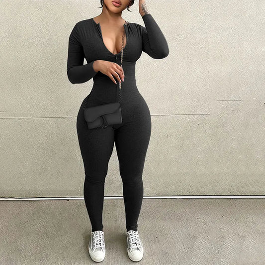 Women's Jumpsuits Autumn New Long Sleeve Bodycon Fashion Zippers Sexy Grey Rompers Casual Streetwear Fitness Sports Yoga Overall