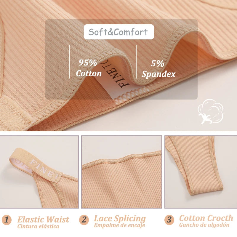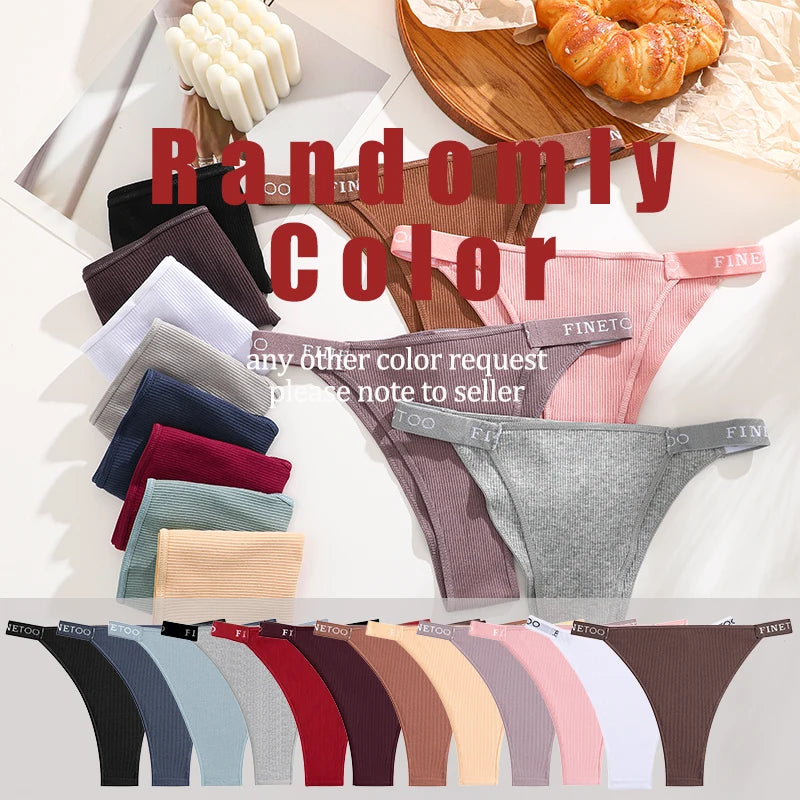 Women's Cotton Panties Sexy Underpants Low Waist Female 4PCS Briefs Finetoo Letters Thong Solid Color Intimate Lingerie M-XL