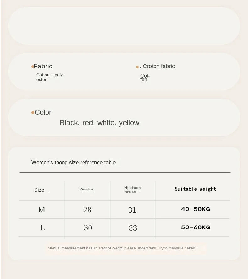 4PCS Sexy WOMEN'S Cotton Thong Underwear for Europe and the United States 22 to 34 Inch Waist Women