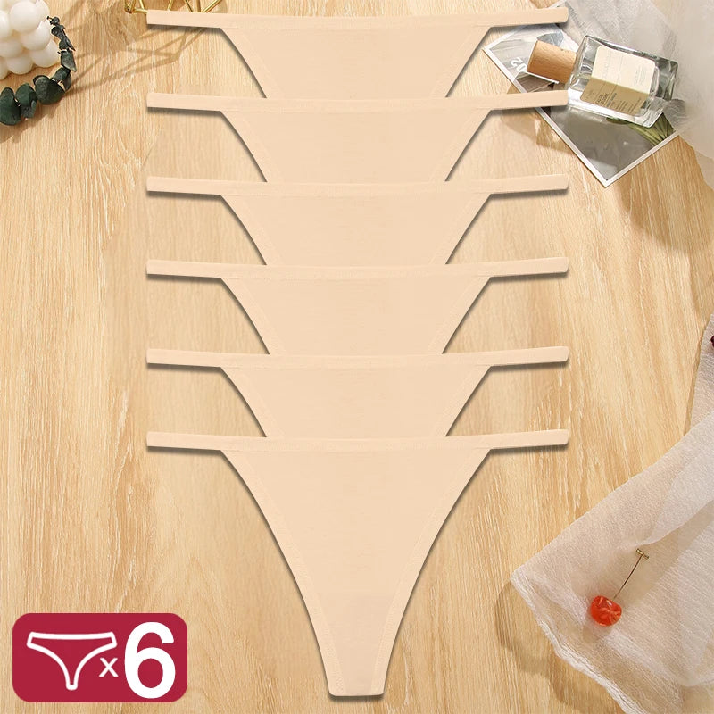 FINETOO 6PCS/Set Sexy Women Cotton G-String Underwear Low Waist Panties Girl T-back Panty Soft Thin Strap Femme Thong Lingerie
