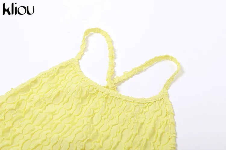 Kliou Solid Ruched Spaghetti Strap Bandage Maxi Dress Women Casual Sleeveless Backless Bodycon Ladies Party Streetwear Dresses