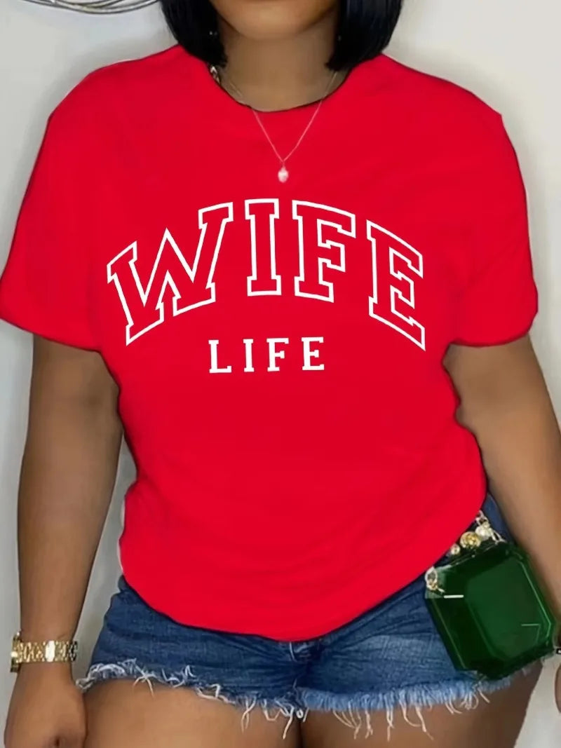 Letter Print T-shirt Casual Short Sleeve Crew Neck Top for Spring Summer Clothing Women's Harajuku Sleeve Aesthetic Clothes