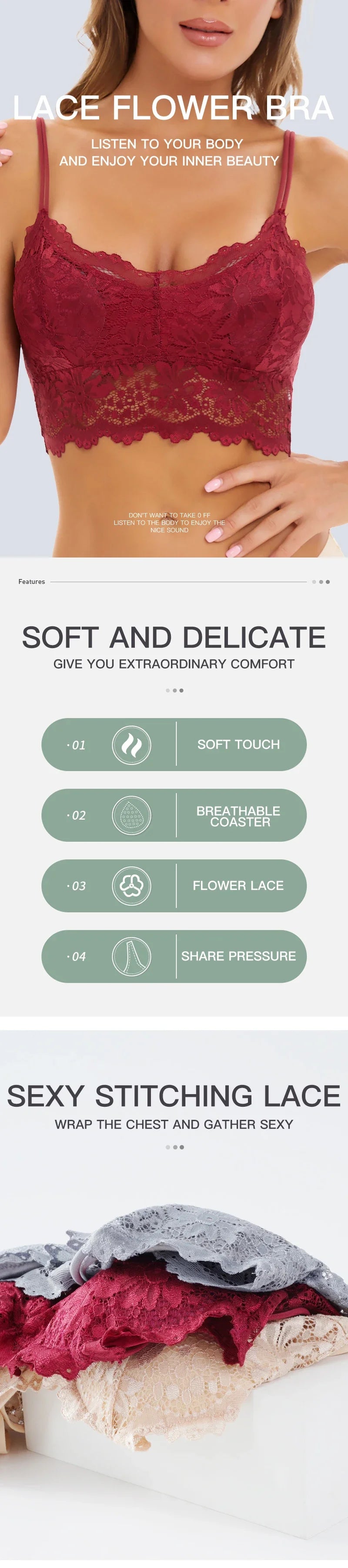 New Women Lace Bras Top Comfortable Bralette Solid Color Sexy Underwear Vest Female Hollow Out Wireless Lingerie Seamless Bra