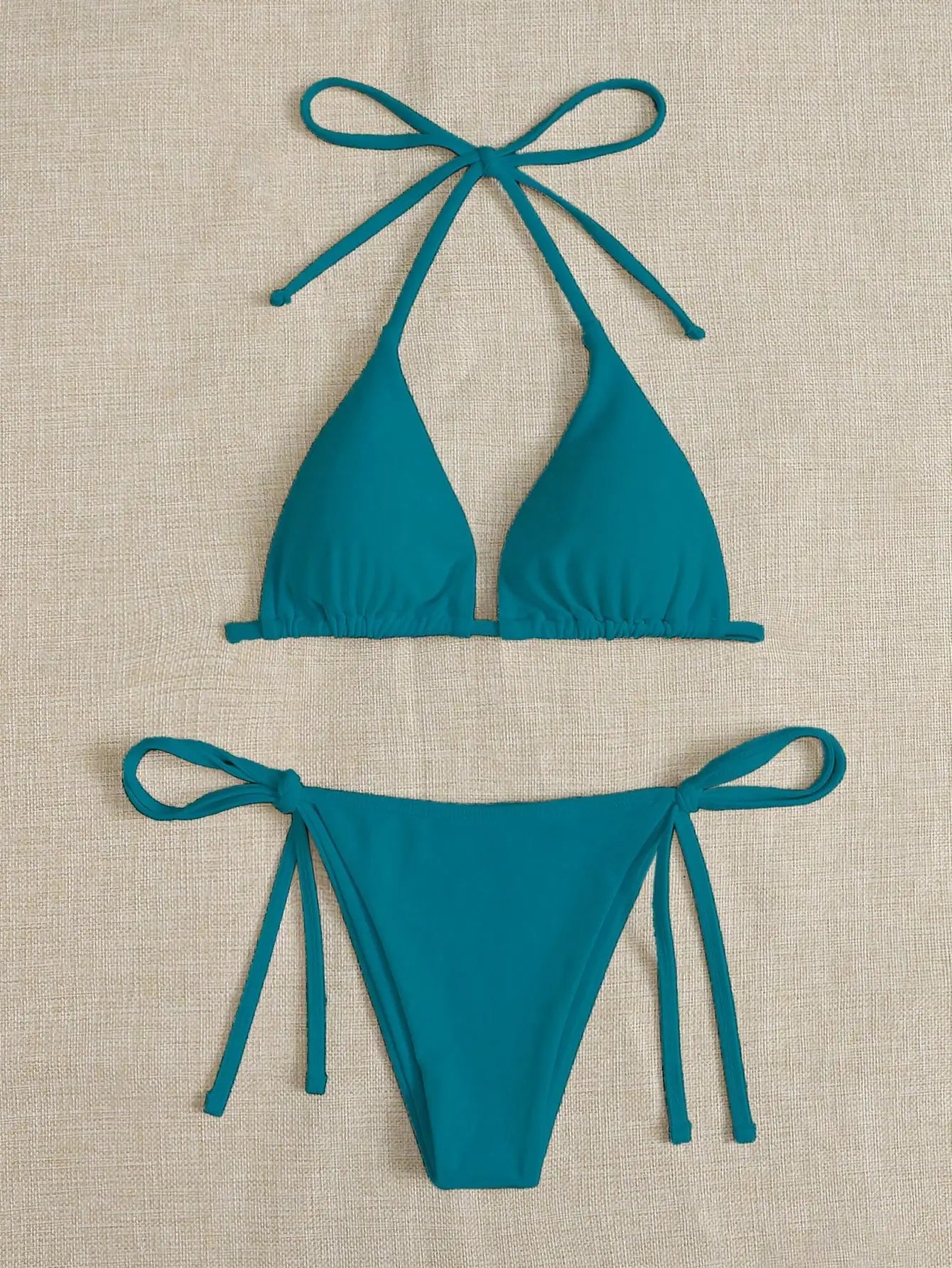 Solid color three-point bikini strap-on women's swimsuit set
