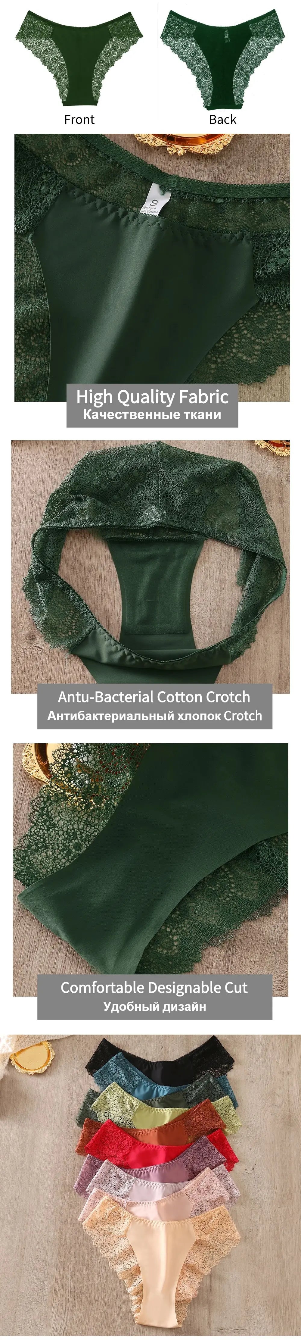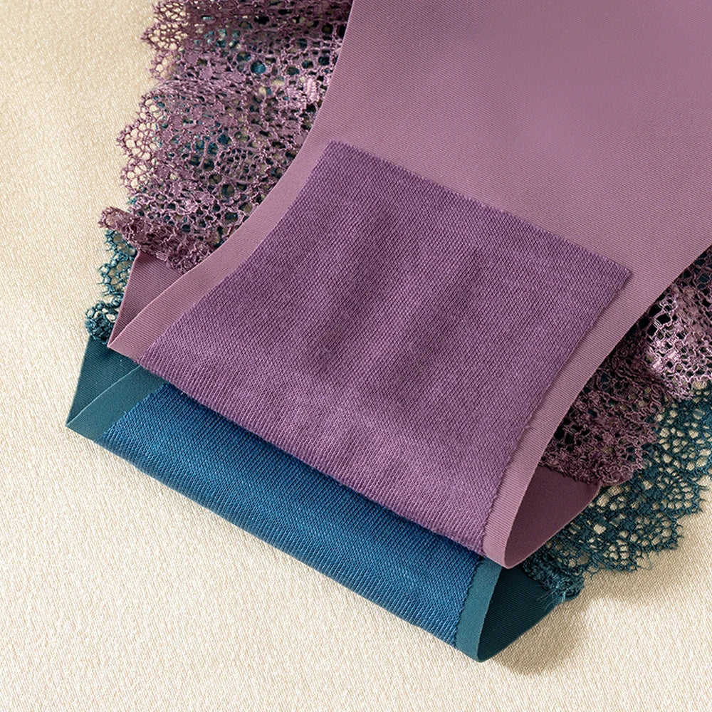 WarmSteps 3Pcs/Set Women's Lace Panties Briefs Solid Ice Silk Lingerie Female Underpanties Underwear for Woman Low Rise Briefs