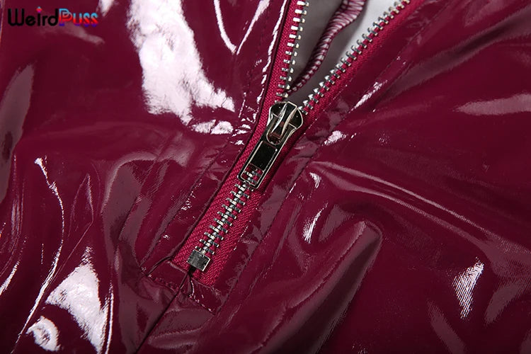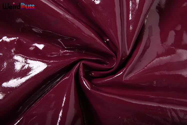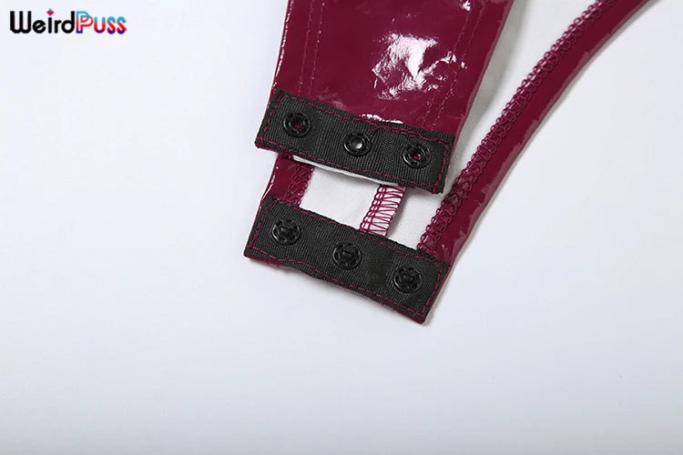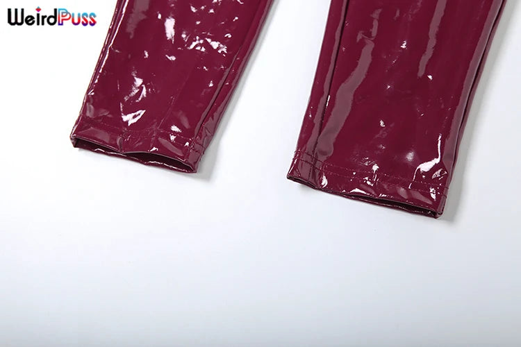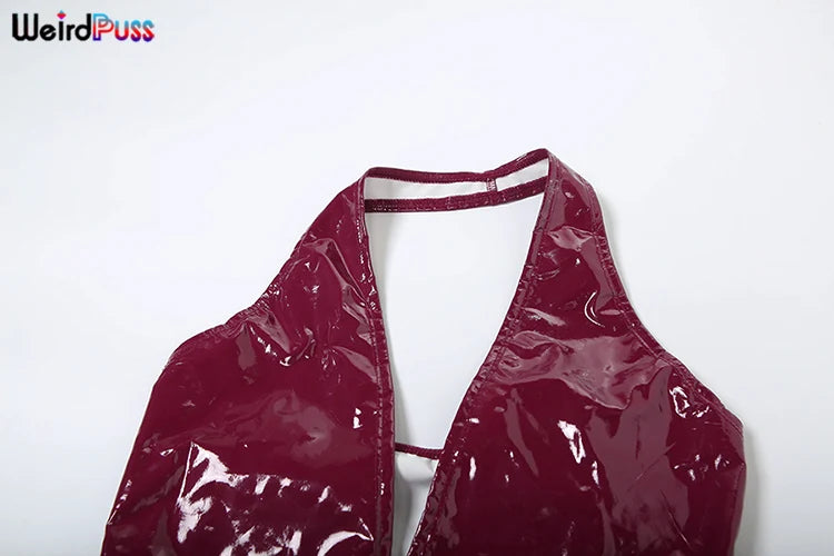 Weird Puss Faux Leather 2 Piece Set Women Sexy Low-Neck Halter Sleeveless Bodysuit+Zipper Waist Stretch Pant Clubwear Trend Suit